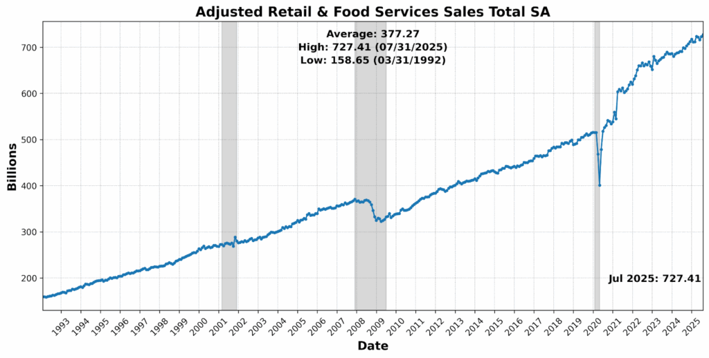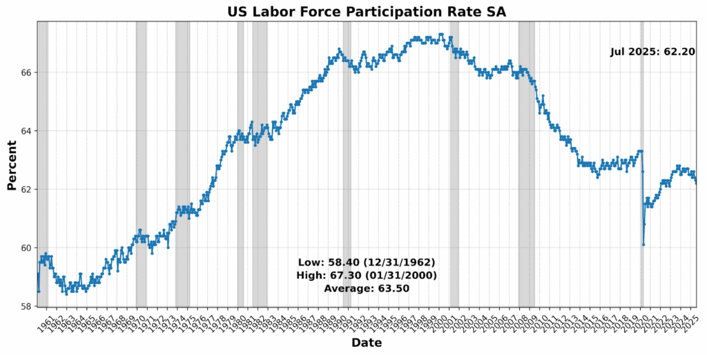 The most recent Personal Consumption Expenditure index data reinforced that narrative: goods inflation softened while services, particularly financial and portfolio-management fees, continued to apply upward pressure. Core PCE edged modestly higher, keeping the year-over-year pace at 2.9 percent but with the three-month annualized rate rising, reflecting ongoing stickiness. Goods tied to tariffs saw softer or declining prices, while categories like recreational goods and vehicles benefitted from promotions that drove consumer activity. Personal outlays rose 0.5 percent, with real spending up 0.3 percent, though much of this strength reflected bargain-driven purchases rather than broad-based demand. Wage growth remained steady but slowed incrementally, reinforcing the impression that income support is softening. Taken together, the data suggest that services inflation remains entrenched, even as tariff pass-through fades, leaving Jerome Powell’s Jackson Hole caution — that tariff effects will accumulate over time — still relevant.