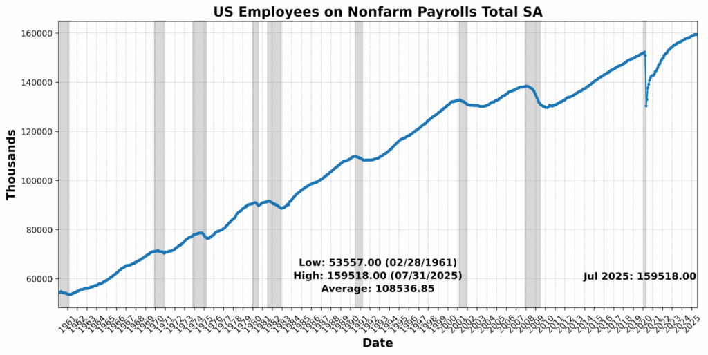 Additional cooling is evident in July’s JOLTS and August ADP data. Job openings fell to 7.18 million, pushing the ratio of vacancies to unemployed workers below 1.0 for the first time in years, while quits held steady but are likely to trend lower as job-switching opportunities diminish. Health care job openings dropped to a four-year low, and ADP data showed education and health services employment contracting for a fifth consecutive month — diverging from the slower but still positive growth reported by BLS. Analysts increasingly expect reality lies somewhere in between: hospitals and nursing facilities are still hiring, but specialized services such as dentistry and outpatient care are shedding jobs. Staffing firms report shortages of licensed professionals remain a constraint, suggesting that even as demand cools, structural bottlenecks persist. Broadly, the labor market is no longer overheating but is now navigating a fragile equilibrium between weakening demand and supply-side frictions.