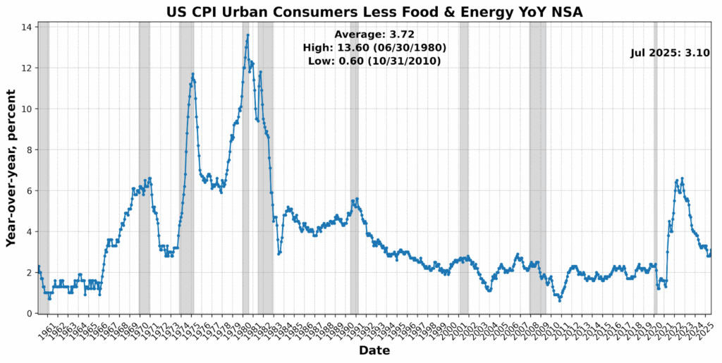 At the wholesale level, the Producer Price Index (PPI) unexpectedly fell 0.1 percent last month, the first monthly decline in four months, with July also revised lower. On a year-over-year basis, PPI rose 2.6 percent, but the details showed firms were reluctant to raise prices aggressively despite higher tariff-related costs. Services margins contracted 1.7 percent — the sharpest drop since 2009 — offsetting modest gains in goods prices, while machinery and vehicle wholesaling saw especially steep margin declines. Analysts suggest retailers have been “eating” tariff costs to avoid alienating consumers already squeezed by affordability pressures, a strategy that may not be sustainable if demand weakens further. This divergence — sticky consumer-facing CPI inflation alongside softening wholesale margins — underscores the strain facing producers and complicates the Fed’s assessment as it balances inflation persistence against signs of weaker demand.