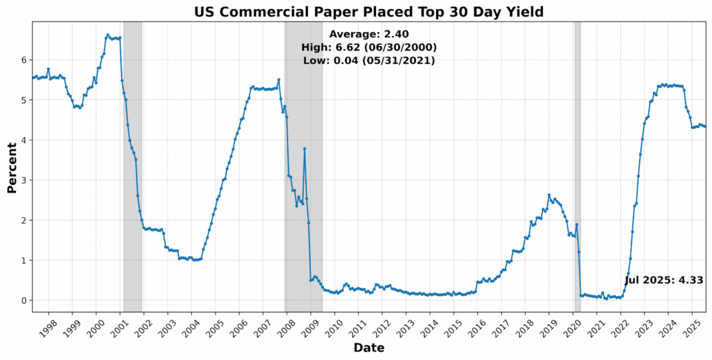 Policy backdrops further underscore the fragility. The Fed’s Beige Book reported little or no change in activity across most districts, with consumer spending flat or declining and tariffs cited widely as a source of rising input costs. Employment was largely unchanged but labor shortages persisted in some sectors, particularly construction, where fewer immigrant workers are available. On the monetary side, the effective federal funds rate — long anchored at the bottom of the Fed’s target range — could soon drift higher as reserves dwindle and Treasury’s bill issuance drains liquidity. Market participants warn that a drop toward the Fed’s “comfort floor” of $2.7 trillion in reserves could force intervention. On the fiscal side, Congress remains gridlocked, with Democrats pushing a $1.5 trillion package tied to health care subsidies and Medicaid, while Republicans press for a clean extension. The standoff adds another layer of uncertainty to an economy already facing tighter liquidity and cooling household sentiment.