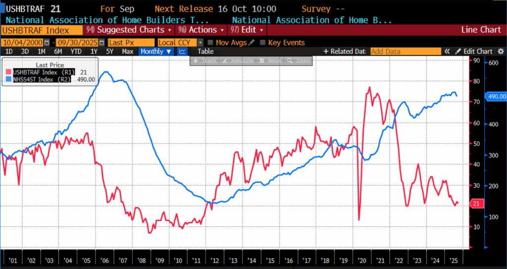 National Association of Home Builders’ Traffic of Prospective Buyers SA and US Census Bureau US New One Family Houses Total For Sale (1990 – present)