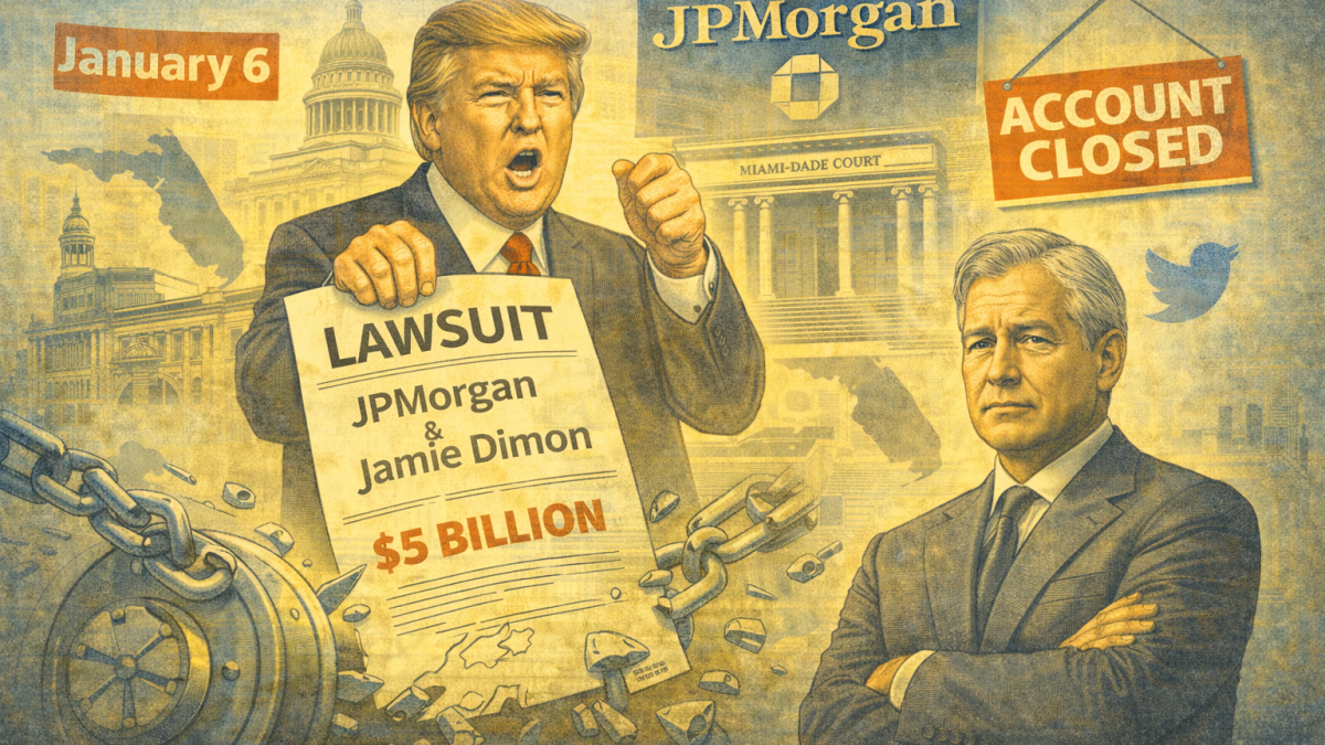 Trump sues JPMorgan and Jamie Dimon for $5B, alleging politically motivated “debanking” after Jan. 6 account closures.