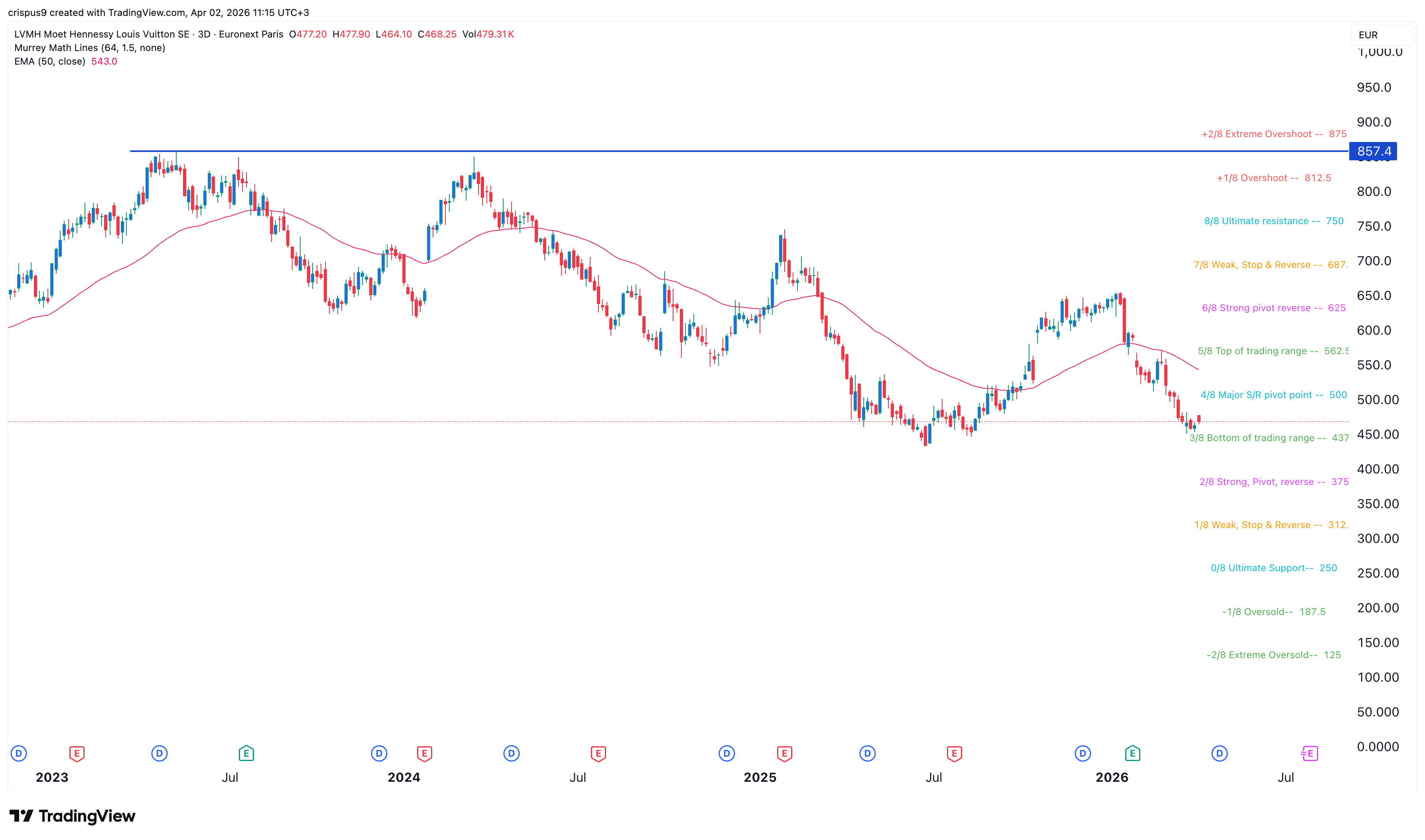 Technicals suggest that the LVMH stock price may continue falling in the near term.