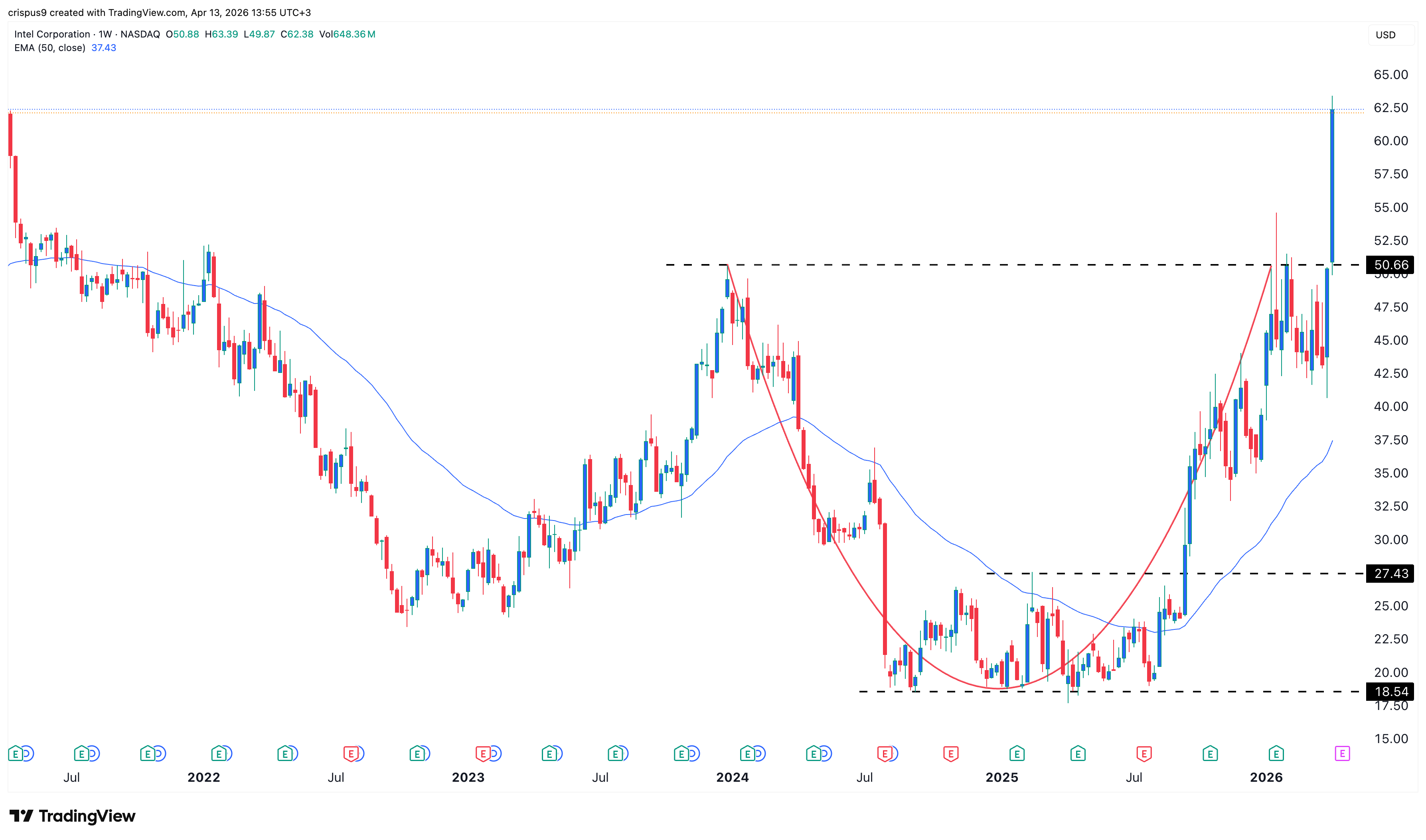 The post Intel stock is in a parabolic move, and a rare pattern points to a surge to $82 appeared first on Invezz