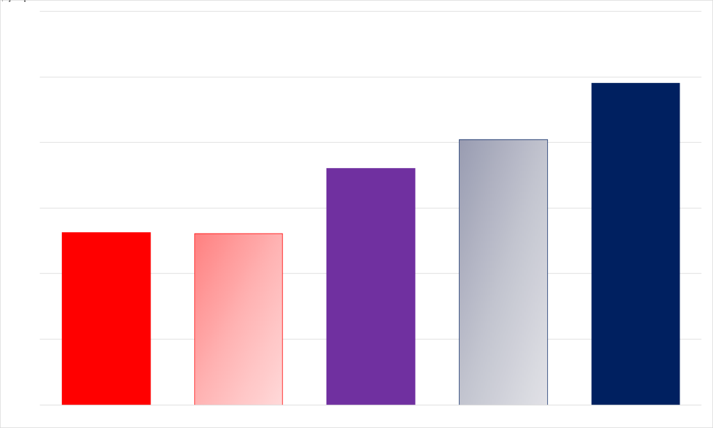 Figure 4 shows the total net domestic migration for each of our five groups of states for 2020 to 2025. It shows that, while 3.5 million Americans left “Blue” states for elsewhere in the United States, “Red” states gained 3.2 million residents from elsewhere.