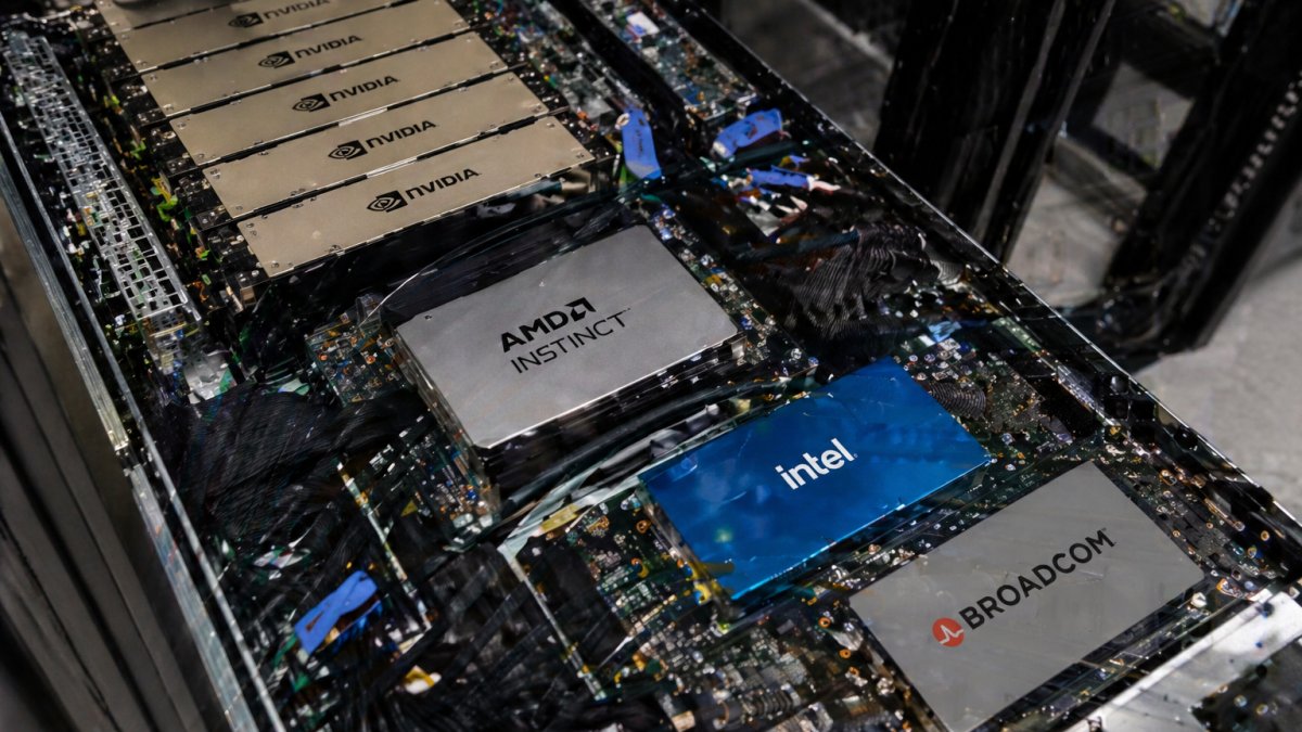Nvidia, AMD, Intel chips inside a data server rack